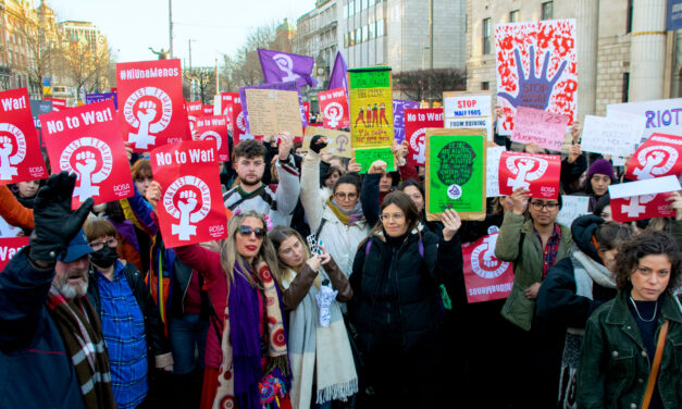 Zowel in België als in Ierland hebben de socialistische feministische campagnes ROSA hun lokale protestacties, meetings en marsen omgevormd tot manifestaties “tegen seksisme en oorlog”, met een grote opkomst. Zo liepen 700 mensen mee in onze betoging in Dublin en nog eens honderden in steden en dorpen in heel Ierland. In Brussel trok de betoging van de Wereldvrouwenmars 8000 deelnemers en waren er 1000 betogers in de delegatie van Campagne ROSA. Op onze borden stonden slogans als “Nee tegen de invasie van Oekraïne”, “Tegen oorlog en seksisme”, en “Voor een internationale massabeweging tegen de oorlog.”